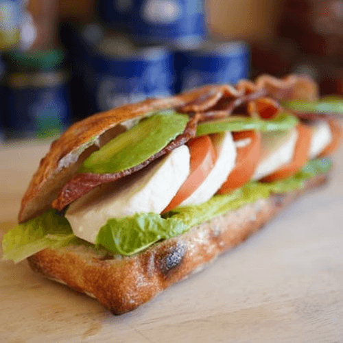 Crispy Bacon, Lettuce, Tomato, Buffalo Mozzarella, Avocado. Served with Chips and Drink
