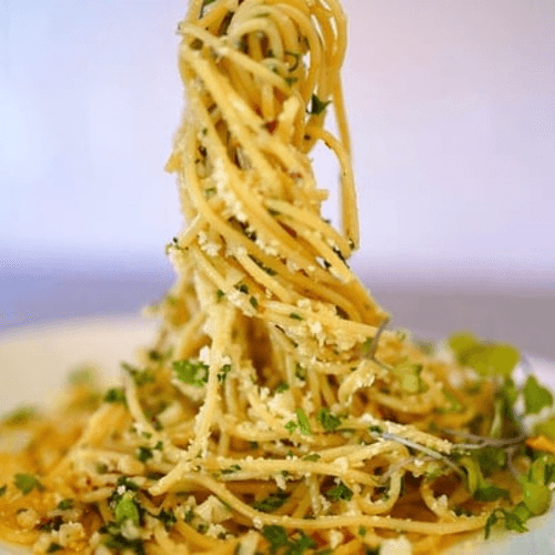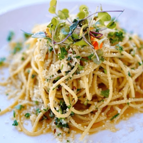 Spaghetti with Garlic, EVOO, Crushed Chili Flakes, Parmesan