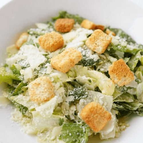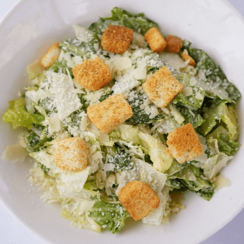 Romaine Lettuce, Toasted Croutons, Shaved Parmesan, Creamy Caesar Dressing.