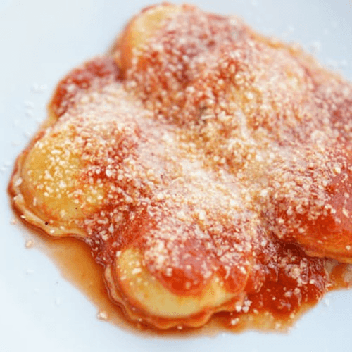 Filled Ricotta Cheese, Spinach & Fresh Herbs Ravioli in a Light Tomato Basil Sauce, Parmesan