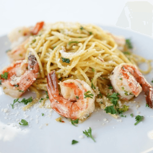 Black Tiger Shrimp Sauteed in a White Wine Garlic Sauce, Parsley, Parmesan.