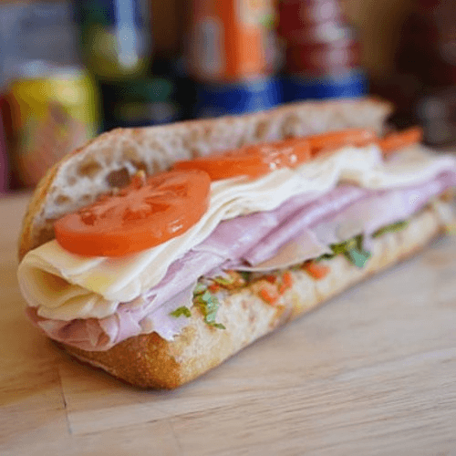 Ham, Cheese, Shredded Lettuce, Sliced Tomatoes, Hot Italian Antipasto. Served with Chips & Soft Drink